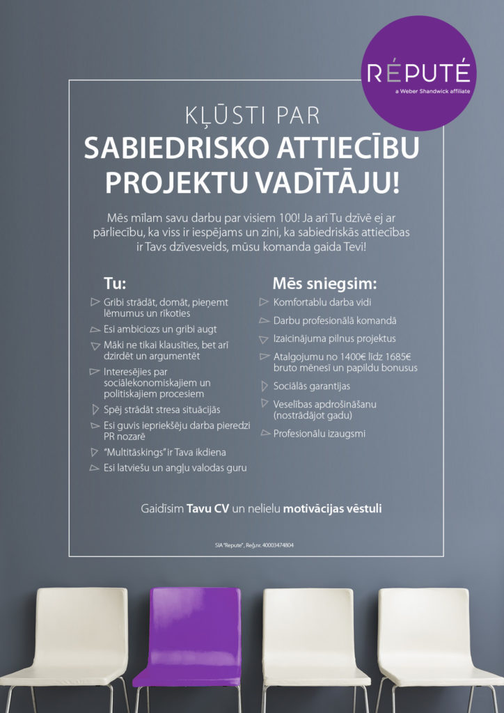 Projektu vadītāj, pievienojies mūsu komandai! – Sabiedrisko attiecību aģentūra „Réputé”